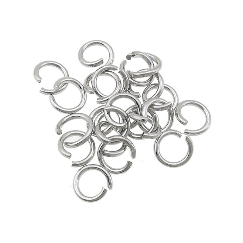 These small silver colored brass rings are used to make different items of jewelry, such as pendants or bracelets. They are presented open to facilitate their use.