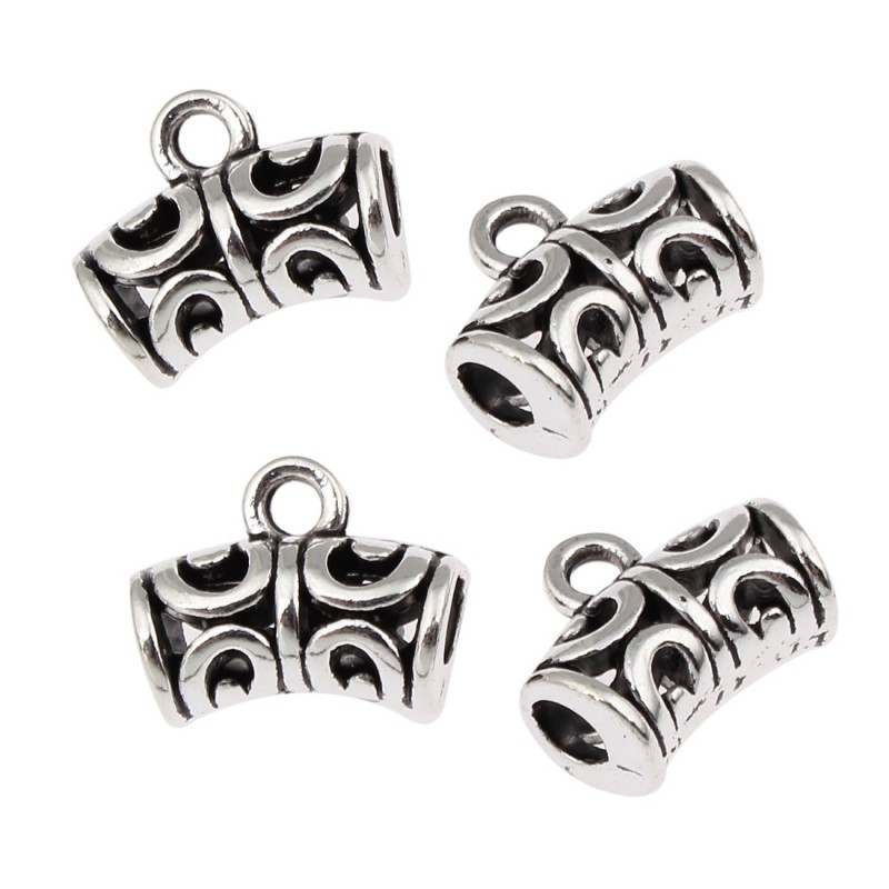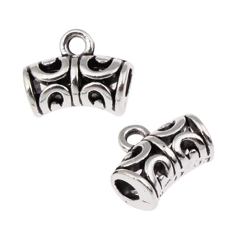 Este colgador con forma de cilindro calado y curvo es ideal para montar bisutería, puesto que se le puede acoplar una anilla con un colgante.